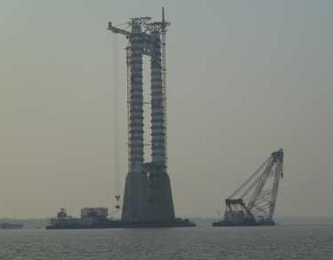 中塔施工现场远景图,苏州黎宇文化传播媒介有限公司是国内第一家将复合润滑涂层用于桥梁润滑系统,国内第一家将鞍座之间摩擦系数达到0.04,桥梁鞍座与座体之间润滑结构已获国家专利,已在国内多座大型跨江桥梁应用此润滑工程技术。
